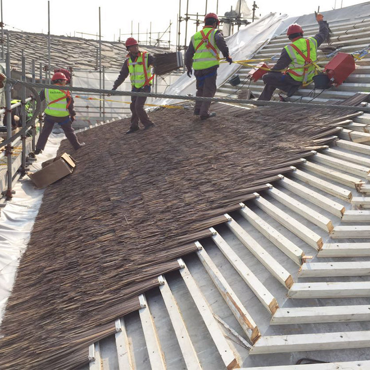? ? ? ? 安裝仿真茅草之前,必須要對(duì)屋頂做防水系統(tǒng),先做好防水層,再在防水層上鋪木條或水泥板塊,這樣以便于安裝仿真茅草。茅草瓦安裝較厚時(shí)具有一定的防水作用,但也要防止長(zhǎng)時(shí)間下雨會(huì)有漏雨的可能,所以也要做好專(zhuān)業(yè)的防水層系統(tǒng)。在屋面做好防水系統(tǒng)后,再在上面放防腐木條,并做防水處理,再鋪蓋仿真茅草瓦。并由屋檐從下向上鋪,與常規(guī)的屋頂鋪瓦的方法一樣,或者在做好屋面防水系統(tǒng)后,可以放水泥板塊,這樣就可以直接在水泥板塊上直接安裝仿真茅草瓦。這樣就可以保證安裝仿真茅草在屋面上不會(huì)漏雨了。