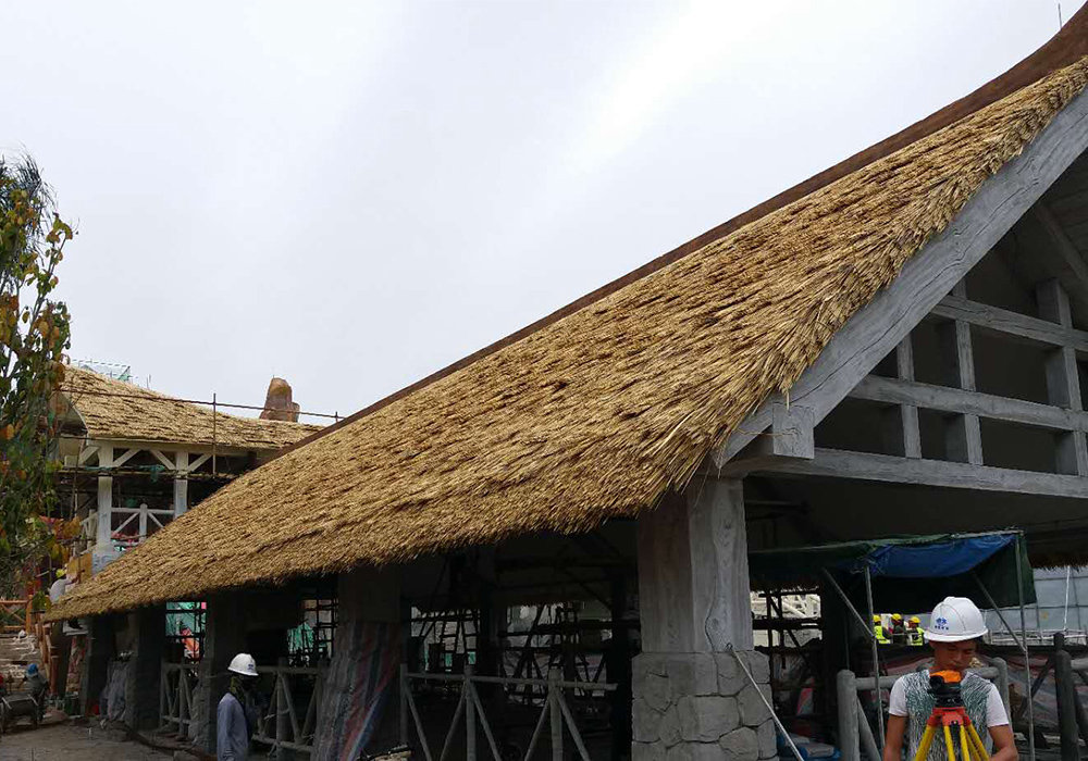 仿茅草瓦施工非常方便,他沒有任何獨特的工藝要求,只要把這種材料固定在房頂基礎,任何極端天氣都可以應付,既不怕風吹雨打,也不擔心會生蟲和發生真菌污染。
