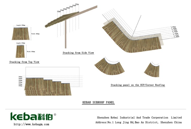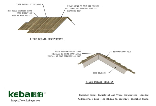3) ? ?仿真茅草瓦雖有一定的防雨水作用(重疊較厚時),但擋雨水并不是它的主要功能,建議安裝前屋頂做好專業的防水層;