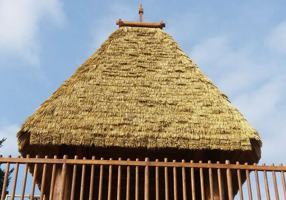 正脊:把屋面茅草瓦片鋪完再做正脊收口;