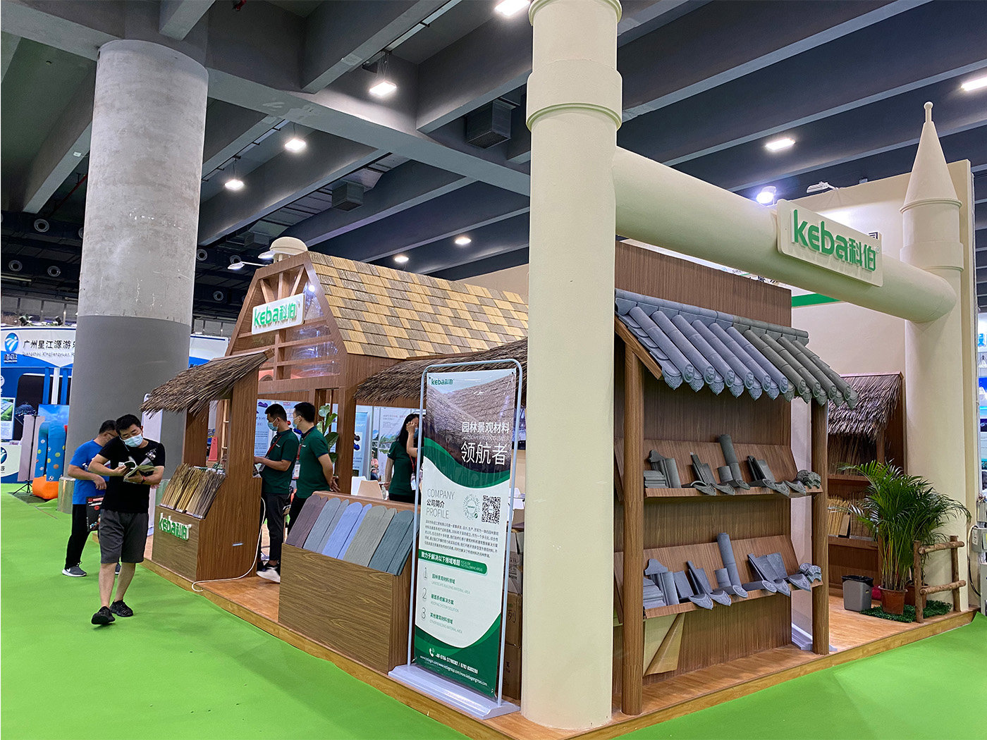 ? ? ? ? 在2020年廣州亞洲樂園及景點博覽會開展以來,我們秉承客戶至上的原則,一切以站在客戶的角度去理解,感受,服務等,為了客戶能夠更好的了解到合成屋面瓦、仿真茅草、青磚青瓦等產品,深圳市科佰工貿有限公司在展會位準備了木屋,并在上面鋪設合成屋面瓦和仿真茅草亭子,以方便客戶更好理解,去真實體驗合成屋面瓦、仿真茅草、青磚青瓦等不同產品用于屋頂上的各種美觀效果;同樣準備的多種新款式合成屋面瓦、青磚青瓦、仿真茅草等產品也深受客戶的喜愛,充分體現客戶在展會上對我們產品的認可。