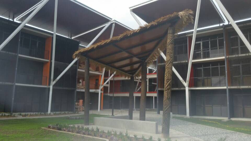 本案例是中鐵建工集團承建的在巴布亞新幾內亞的南太平洋運動會運動村項目,茅草屋頂部分由其國外設計師指定由我司提供。該工程已于4月底完工!預祝順利開園!使用仿真茅草案例應用茅草型號:KBMJJ111E6007