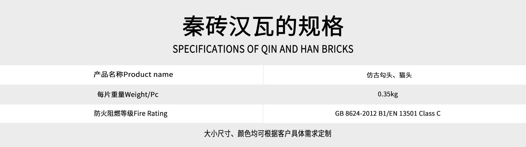 仿古勾頭在自然環(huán)境中具有更佳尋常的耐久性,它即使長(zhǎng)期暴露于紫外線、強(qiáng)光、潮濕、寒熱等惡劣環(huán)境下,仍能保持其顏色和物理性能的穩(wěn)定性。經(jīng)試驗(yàn)檢測(cè)證明,可以確保15年△E值小于5。秦磚漢瓦通過(guò)了12000小時(shí)的人工老化測(cè)試,檢測(cè)結(jié)果△E=3.86。(根據(jù)太陽(yáng)照射量和年日照時(shí)間,12000小時(shí)檢測(cè)試驗(yàn)相當(dāng)于自然使用45年,遇冷不脆、遇熱不軟,長(zhǎng)期使用環(huán)境溫度-40℃至200℃,與鋼鐵熱膨脹系數(shù)基本一致,使因溫差產(chǎn)生的位移基本相等。